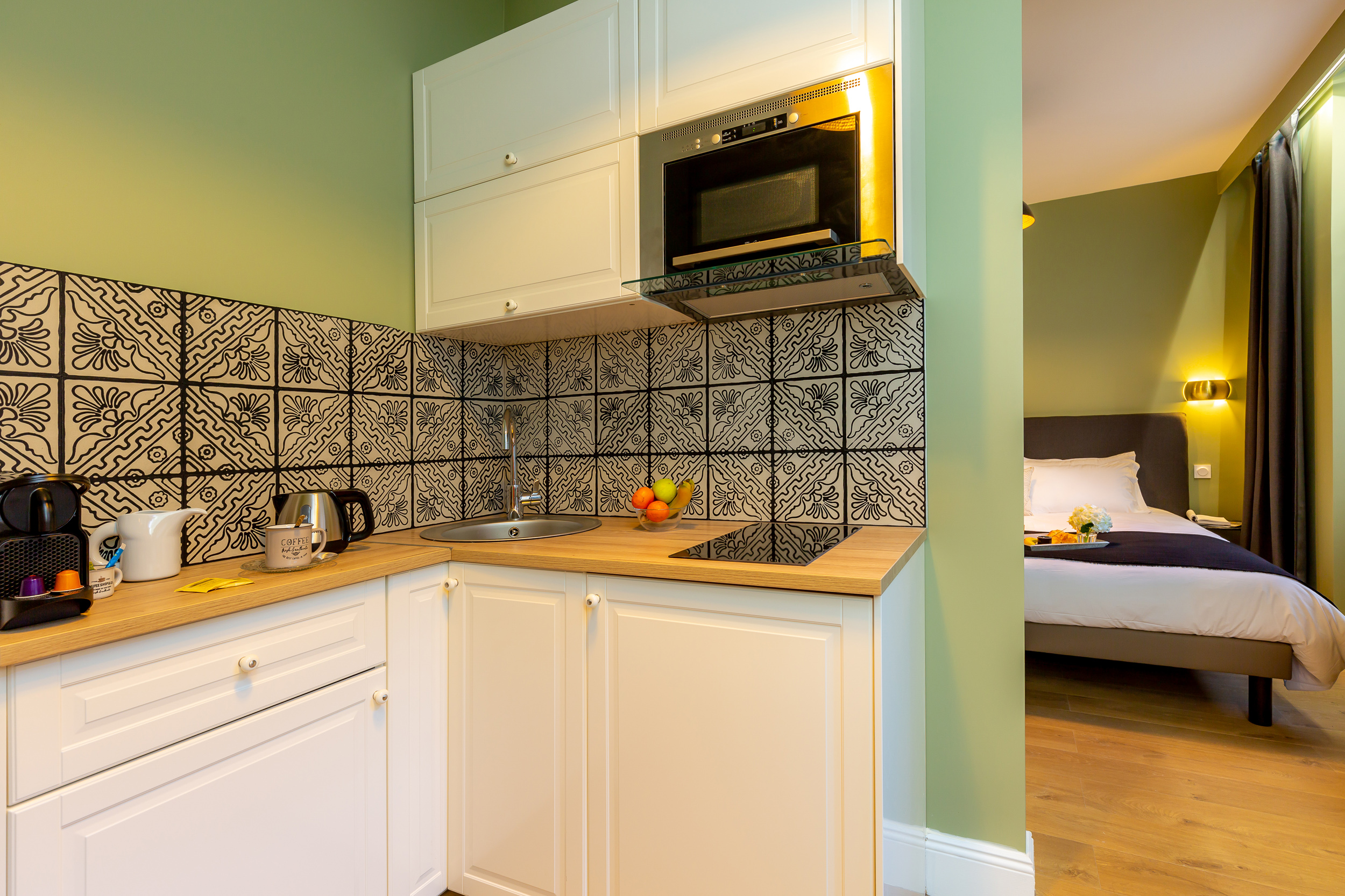 Studio aménagé avec beaucoup de goût. Très belle prestation au niveau salle d'eau , taille du studio, cuisine très bien aménagé, les capsules de café, le thé....